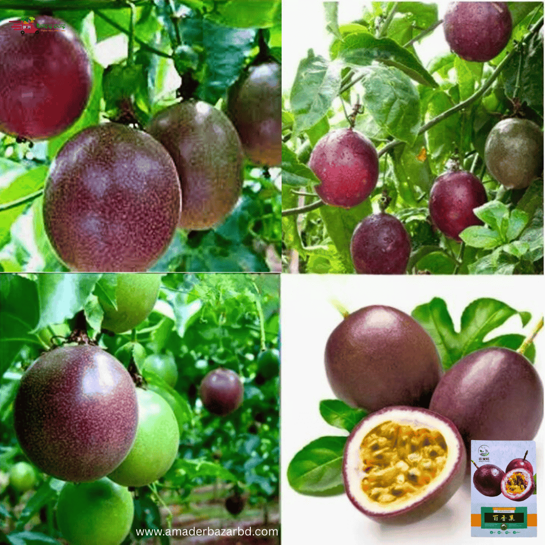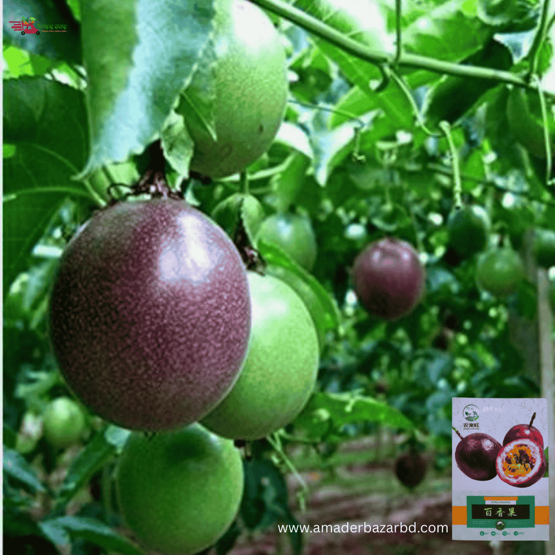 বিদেশী Passion Fruit – প্যাশন ফল (প্রায় ৫০ বীজ) গোলাকার/ডিম্বাকার আকৃতির সুগন্ধি ও রসালো ট্রপিক্যাল ফল। খোসা পাকার পর বেগুনি বা হলুদ রঙ ধারণ করে ভেতরে থাকে নরম জেলি-জাতীয় শাঁস ও অসংখ্য ক্রাঞ্চি বীজ। তীব্র সুগন্ধ ও মিষ্টি-টক স্বাদের জন্য জনপ্রিয়।