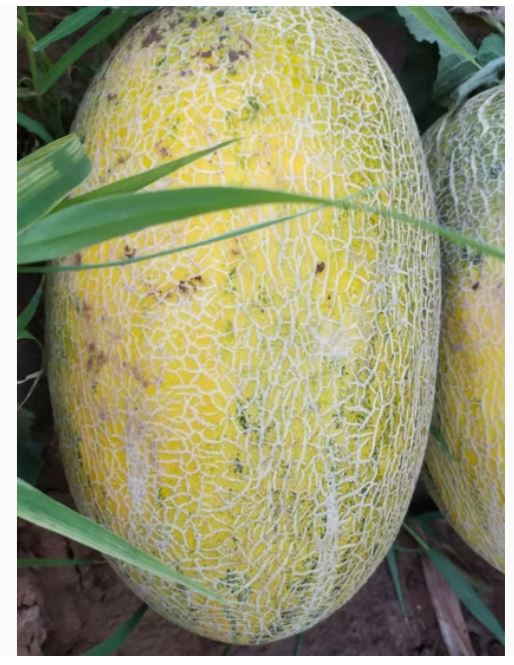বিদেশি Hamimelon – সাম্মাম (প্রায় ২০-২৫ বীজ) বাইরের রঙ: সবুজ/হালকা হলুদ → পাকার সময় সোনালি–হলুদ বা হলুদ-সবুজ টোন। শাঁসের রঙ: হলুদ–কমলা/কোরাল/সোনালি শাঁস। স্বাদ: অত্যন্ত মিষ্টি, ক্রিস্প ও রসালো—হামি মেলনের প্রধান বৈশিষ্ট্য। আকৃতি: লম্বাটে/ওভাল, সমান গঠন। ফলের ওজন: সাধারণত ১–২.৫ কেজি।