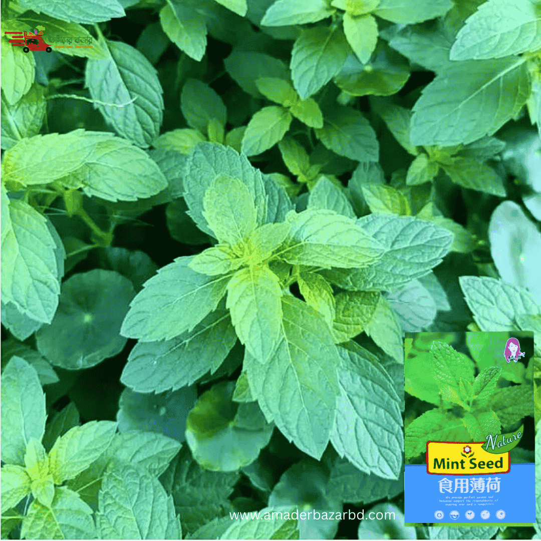 বিদেশী Mint – পুদিনা (প্রায় ১০০০ বীজ) উজ্জ্বল সবুজ ও তীব্র সুগন্ধযুক্ত পুদিনা পাতা দ্রুত অঙ্কুরোদ্গম হয় এবং কম সময়েই সংগ্রহযোগ্য। হালকা বেগুনি/সাদা ফুল হলেও পাতাই প্রধান ব্যবহারযোগ্য অংশ। সারা বছর চাষযোগ্য, নিয়মিত কাটিং করলে এক গাছ থেকেই বারবার ঘন, নরম ও সুগন্ধি পাতা পাওয়া যায়—রান্না, পানীয় ও ঔষধি ব্যবহারে অত্যন্ত উপযোগী।