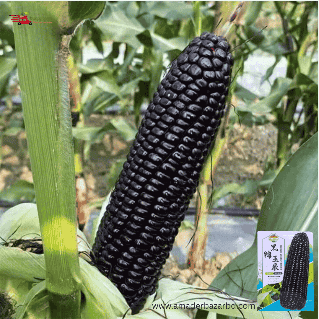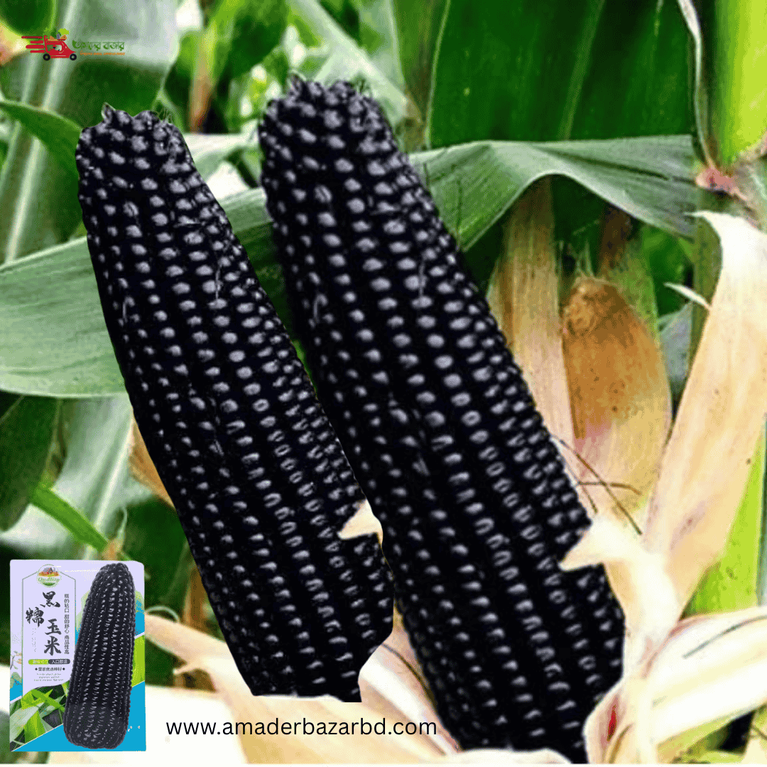 চায়নিজ Black Waxy Corn – কালো ভুট্টা (প্রায় ৩৫ বীজ) চীনের উন্নতমানের ওয়াক্সি ভুট্টা, যার দানা গাঢ় কালো/কালচে বেগুনি- শুঁটি লম্বা ও সিলিন্ডার আকৃতির। কালো ওয়াক্সি দানা—আঠালো, নরম ও সুস্বাদু। সেদ্ধ/ভাজা করলে রং ও স্বাদ আকর্ষণীয় থাকে। তাজা খাওয়ার জন্য খুবই বাজারমুখী ও প্রিমিয়াম দাম।