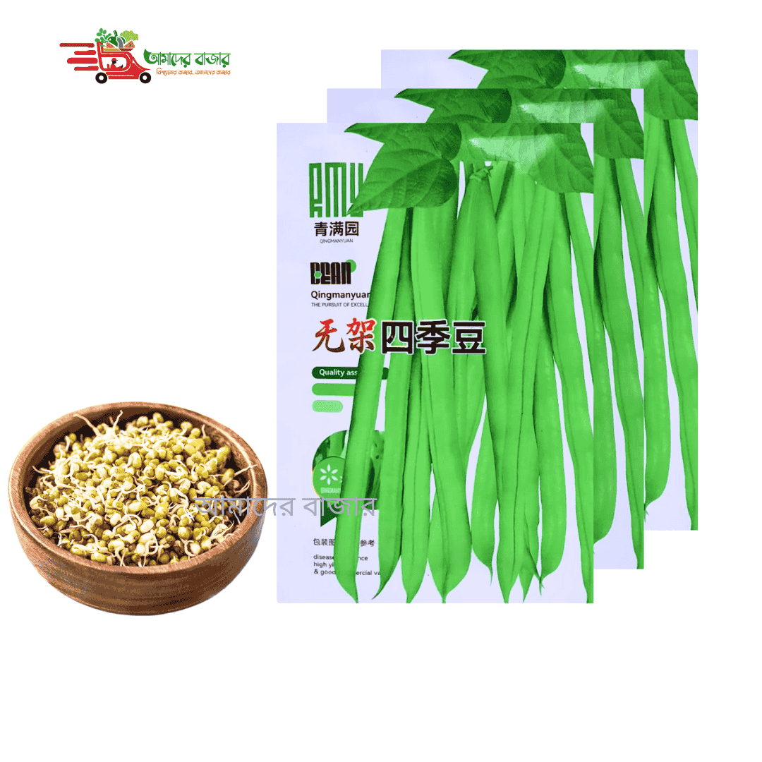 Thai Gluten Free Bean – মাচাবিহীন চারমৌসুমি বরবটি (আনুমানিক ১৬ বীজ) উচ্চ ফলনশীল ও টেকসই– বারবার ফসল তোলা যায়। মাচা ছাড়াই চাষযোগ্য সারা বছর। বাজারে বিক্রির জন্য আকর্ষণীয়– লম্বা ও সবুজ বরবটি।