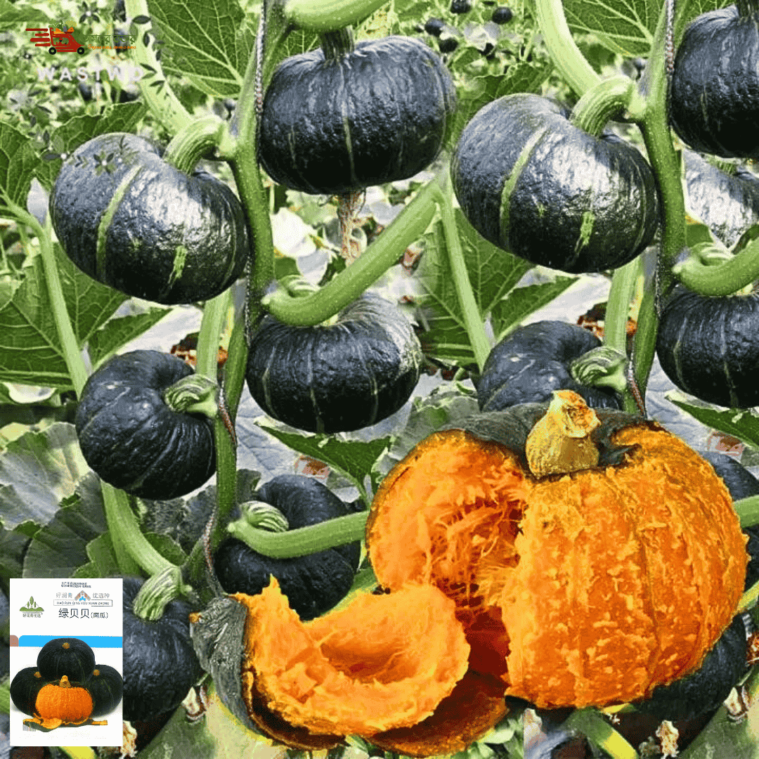Green Beibei Pumpkin (সবুজ রঙের “বেইবেই” জাতের কুমড়া) চীনের একটি উন্নত ও জনপ্রিয় কুমড়ার জাত। এর খোসা গাঢ় সবুজ এবং ভেতরের শাঁস উজ্জ্বল কমলা রঙের, পুরু, নরম ও স্বাদে মিষ্টি। গাছ শক্ত লতানো ও দ্রুত বর্ধনশীল হওয়ায় ভালো ফলন দেয়। প্রতি ফলে সাধারণত ১–২.৫ কেজি ওজন হয় এবং প্রতি গাছে গড়ে ৩–৬টি কুমড়া ধরে। আকর্ষণীয় রঙ, ভালো স্বাদ ও উচ্চ বাজার চাহিদার কারণে এটি ঘরোয়া ও বাণিজ্যিক চাষের জন্য অত্যন্ত উপযোগী।