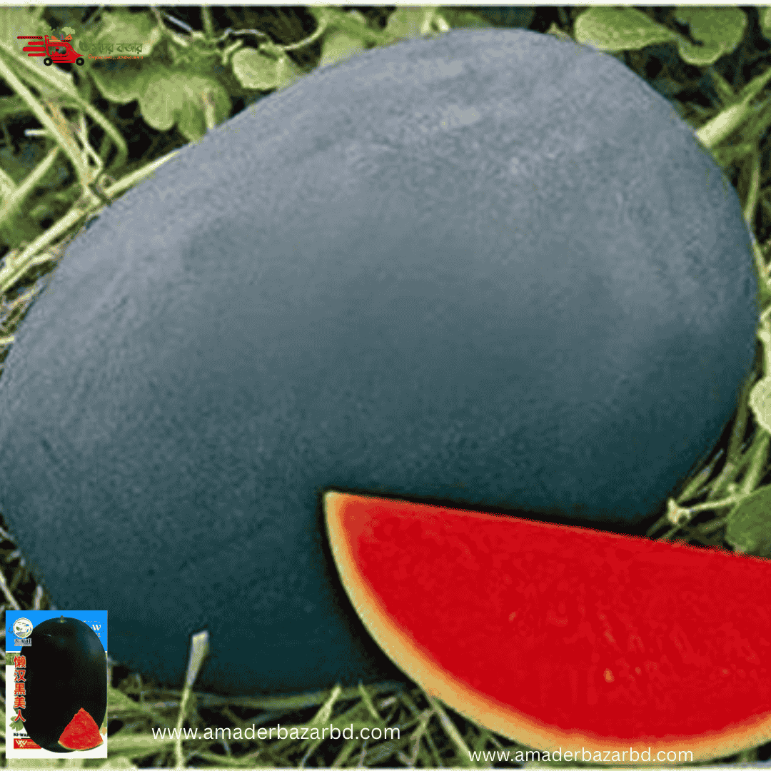 Black Beauty Watermelon / ব্ল্যাক বিউটি তরমুজ (প্রায় ৪০ বীজ) বাইরের খোসা সম্পূর্ণ কালো (Black Skin) ভিতরের অংশ গাঢ় লাল→ রসালো ও নরম–ক্রিস্প। স্বাদ অত্যন্ত মিষ্টি ও সুস্বাদু→ কোমল ও সুগন্ধযুক্ত। ফলের আকার মাঝারি → সাধারণত 6–8 কেজি। ফলের গুণ, আকৃতি, মিষ্টতা ও রসালো টেক্সচারের কারণে এটি এশিয়া জুড়ে অত্যন্ত চাহিদাসম্পন্ন।