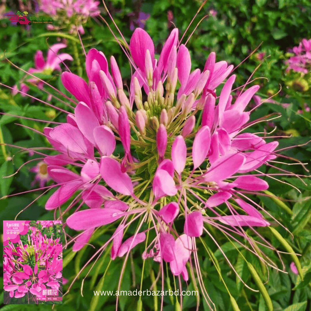 Cleome (Spider Flower) -ক্লিওম / মাকড়সা ফুল (প্রায় ৫০০ বীজ) ঝোপালো ও আকর্ষণীয় গোলাপি-বেগুনি মিশ্র রঙের ফুল। ফুল দেখতে মাকড়সার মতো, যার জন্য এর নাম “Spider Flower”। গাছটি উচ্চতায় ১–১.৫ মিটার পর্যন্ত বেড়ে ওঠে এবং দীর্ঘ সময় ধরে ফুল ফোটে।