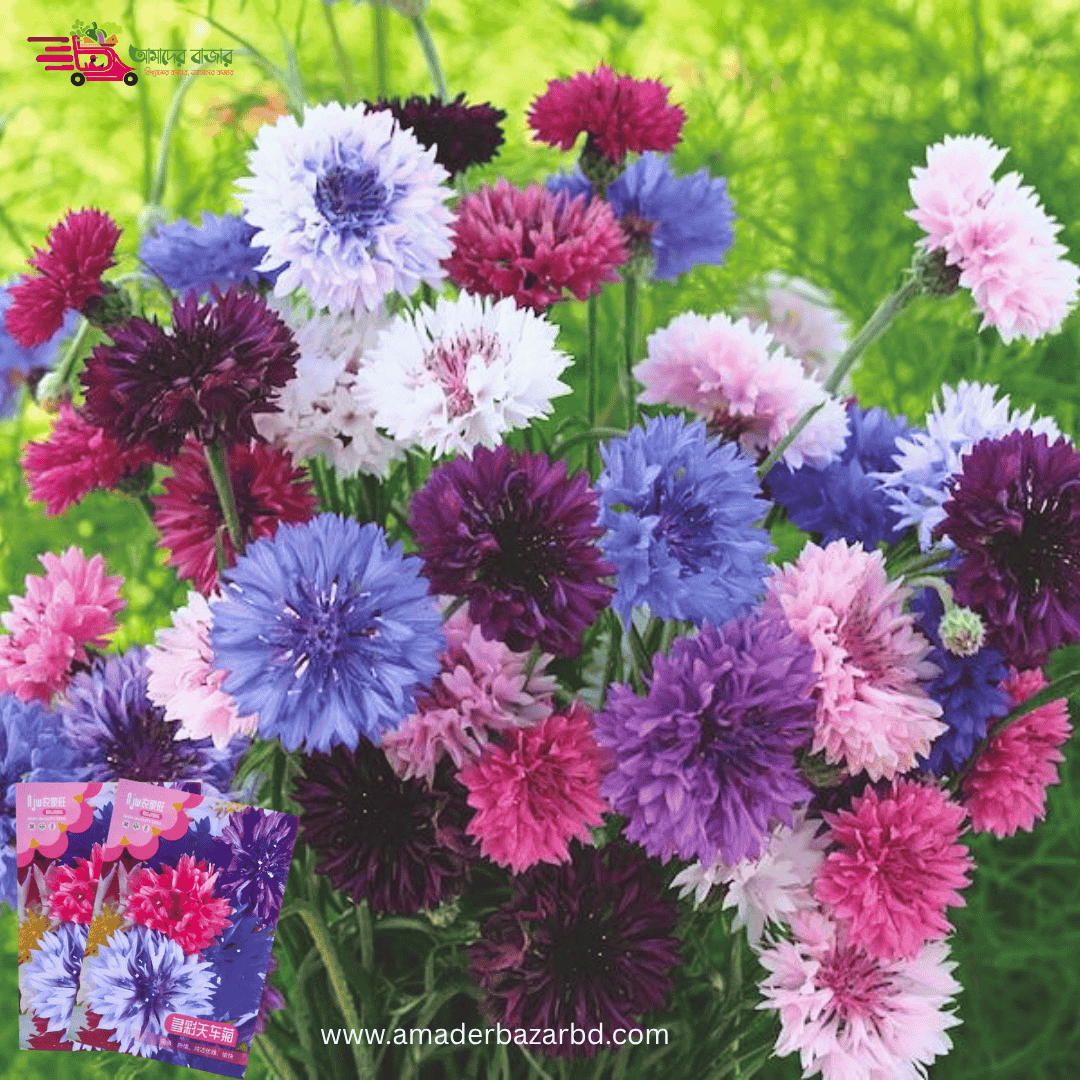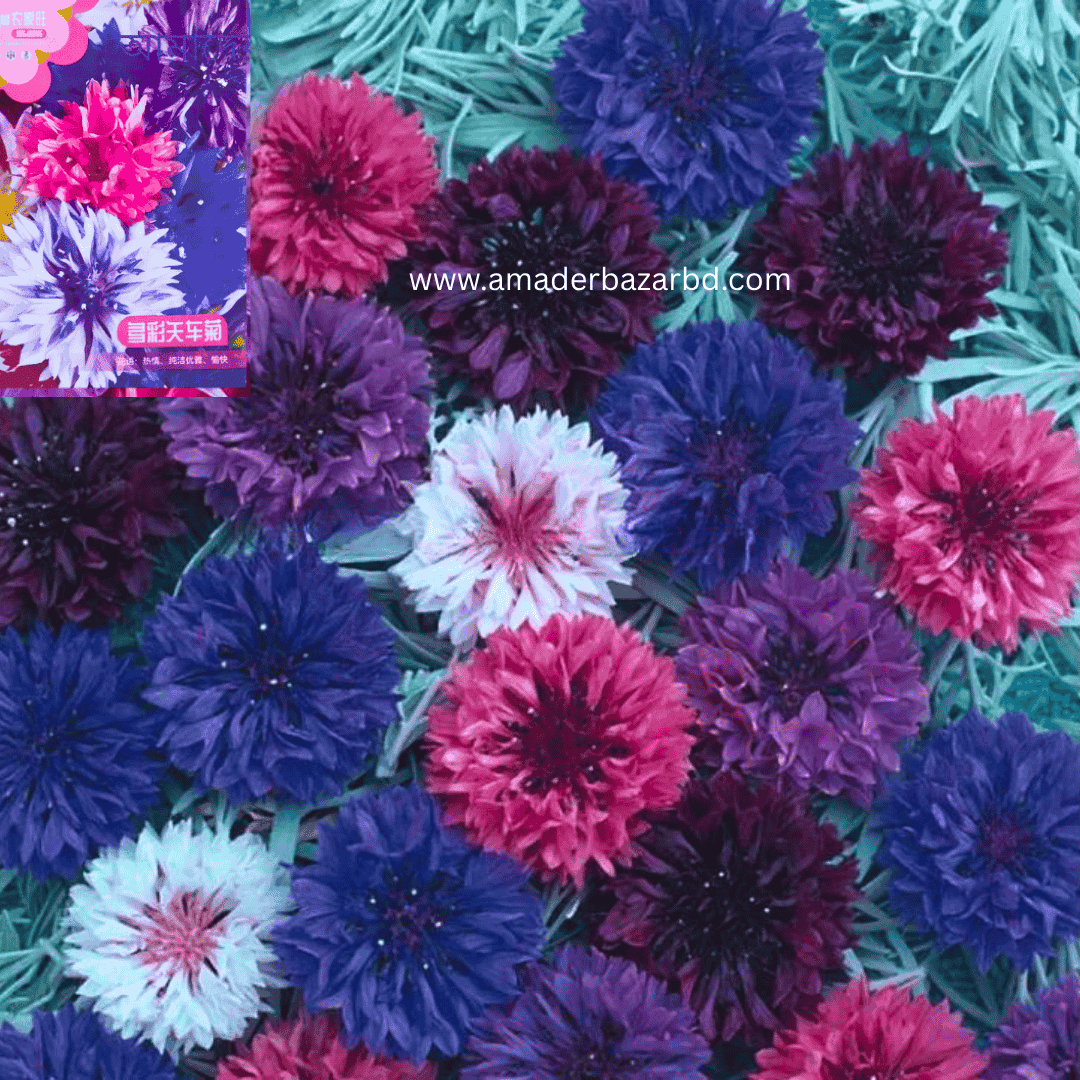 Cornflower – বর্ণিল তিয়ানচে/চীনাবাহার ফুল (প্রায় ৪০০ বীজ) চোখ জুড়ানো বহু রঙের- বার্ষিক ফুল। ফুল বড় ও পাপড়ি দীর্ঘসময় ধরে ফুটে থাকে। পাতা ও ফুলে মৃদু সুগন্ধ রয়েছে- যা চা তৈরিতে ব্যবহৃত হয়।
