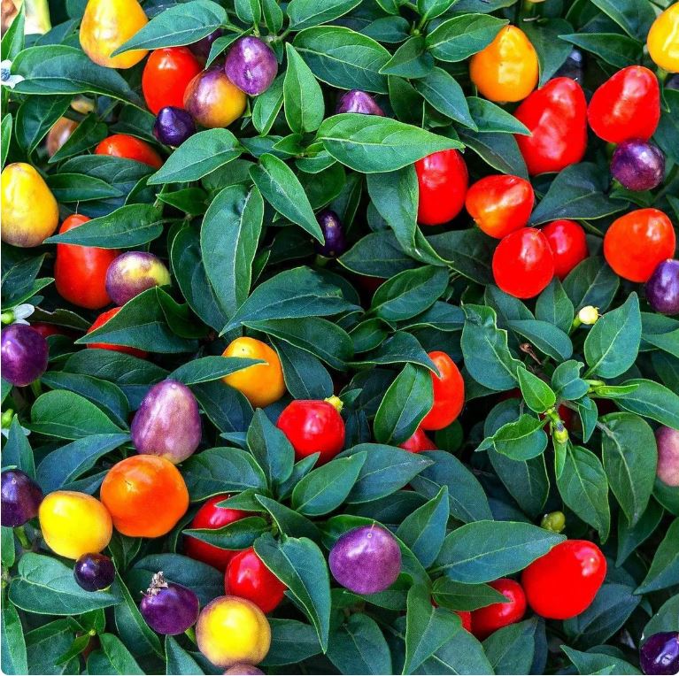 - লাল, হলুদ, কমলা, বেগুনি, সবুজসহ একই গাছে বহু রঙের মরিচ
