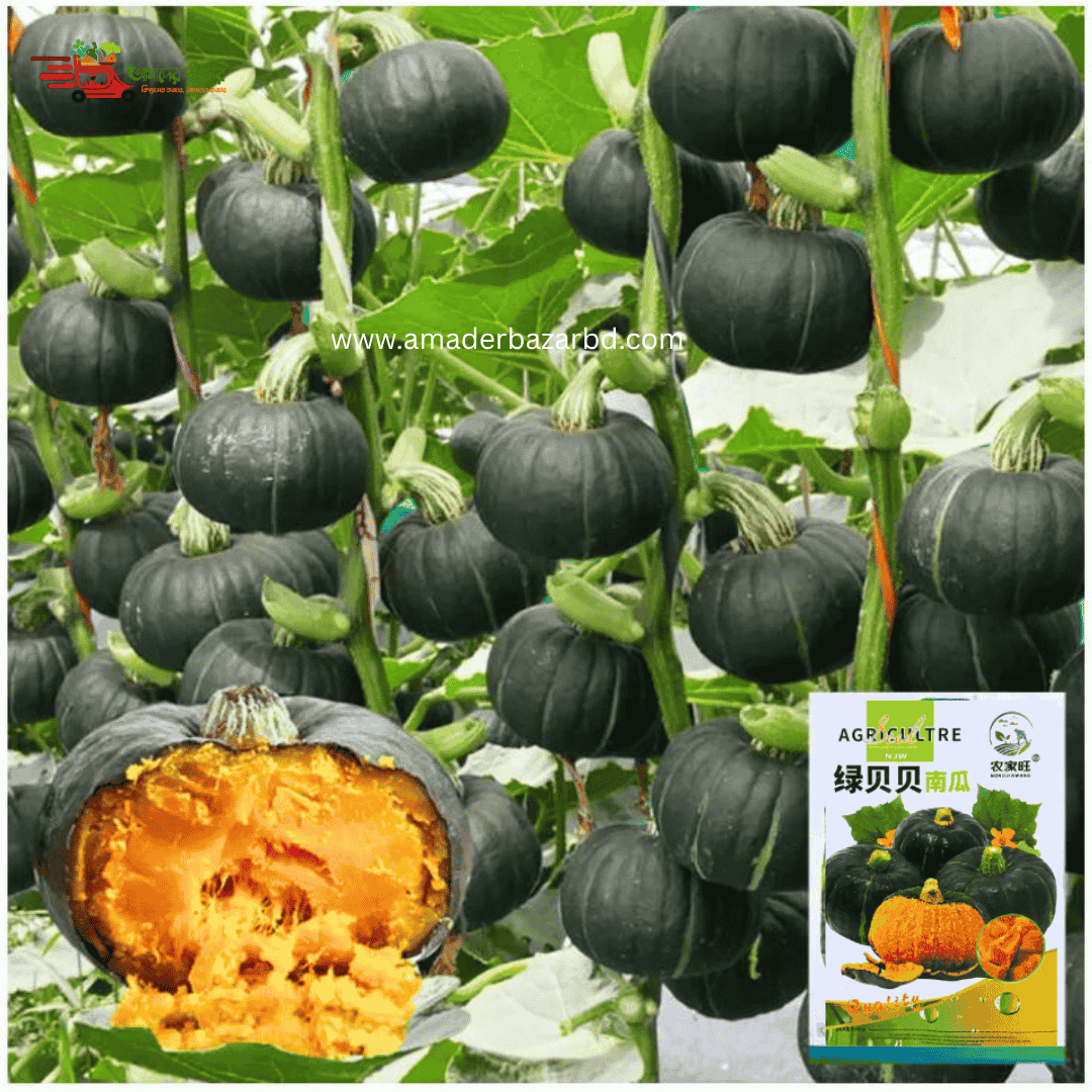 Japanese Pumpkin (জাপানি কুমড়া) – প্রায় 40 বীজ- উচ্চ ফলনশীল বিদেশি জাত যা প্রতি গিটে গিটে কুমড়া ধরে। অল্প সময়ে বেশি ফলন। বাজারে ভালো দামে বিক্রি।