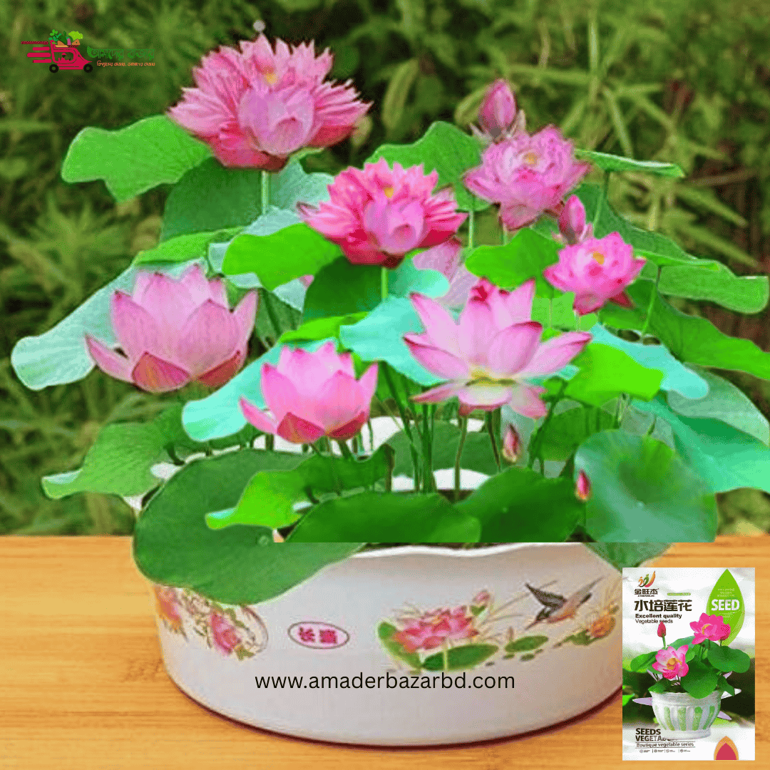 বিদেশী Hydroponic Lotus -পানিতে চাষযোগ্য পদ্মফুল (প্রায় ১০ বীজ) উজ্জ্বল গোলাপি–সাদা মিশ্র রঙ—সুগন্ধি হালকা মিষ্টি ঘ্রাণ। ফুল ছোট আকৃতির ও অত্যন্ত আকর্ষণীয়—পাতা গোলাকার ও উজ্জ্বল সবুজ। টবে বা গ্লাস বোল জন্মানো Mini Lotus—কম জায়গায় চমৎকার শোভা।