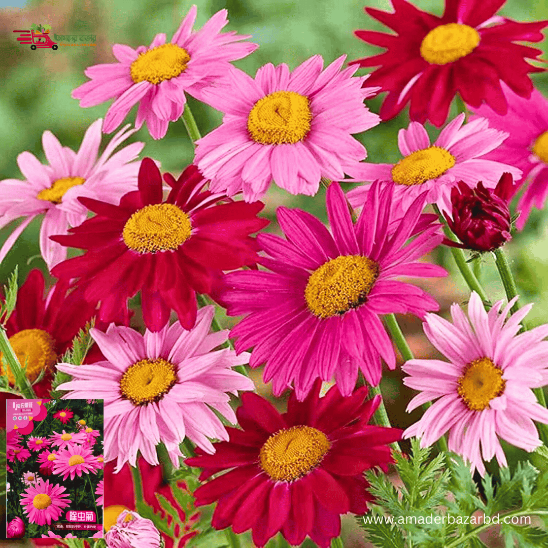 Pyrethrum হলো এক প্রকার সুন্দর ডেইজি-জাতীয় ফুল যা শুধু বাগানের সৌন্দর্যই নয়, একটি ঔষধি ও কীটনাশক গুণসম্পন্ন ফুল। এর থেকে প্রাকৃতিক কীটনাশক পাইরেথ্রিন তৈরি হয়, যা মশা, মাছি ও ক্ষতিকর পোকা দমনে অত্যন্ত কার্যকর। দীর্ঘ সময় ফুল ফোটায় ও সহজে বৃদ্ধি পায়। এই ফুলের নির্যাস থেকে প্রাপ্ত “Pyrethrin” একটি প্রাকৃতিক কীটনাশক হিসেবে ব্যবহৃত হয়, যা পরিবেশবান্ধব ও নিরাপদ।