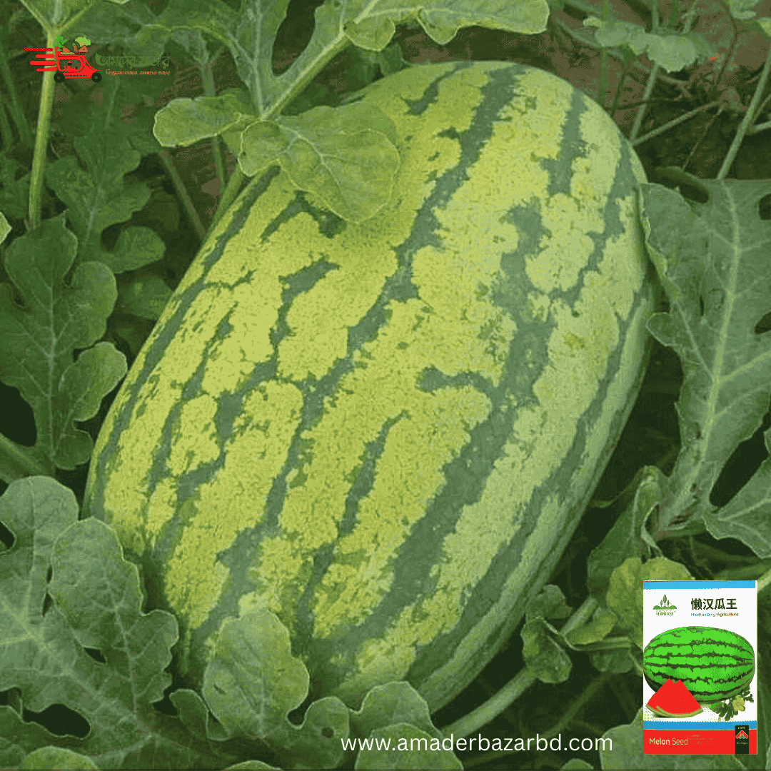 HaoRunQing / HRFS (Quality Boutique Series) এর Lazy Han Watermelon King (懒汉瓜王) একটি উন্নতমানের চায়না হাইব্রিড তরমুজ বীজ, যা উচ্চ ফলন, চমৎকার স্বাদ ও বাজার উপযোগী আকৃতির জন্য পরিচিত। ফল লম্বাটে-ডিম্বাকার থেকে গোলাকার, সবুজ খোসার উপর স্পষ্ট কালো ডোরা এবং ভেতরে উজ্জ্বল লাল, রসালো ও মিষ্টি শাঁস থাকে। সহজ চাষযোগ্য, রোগ সহনশীল এবং গাছপ্রতি একাধিক ফল দেওয়ায় এটি বাণিজ্যিক ও পারিবারিক চাষের জন্য অত্যন্ত উপযোগী।