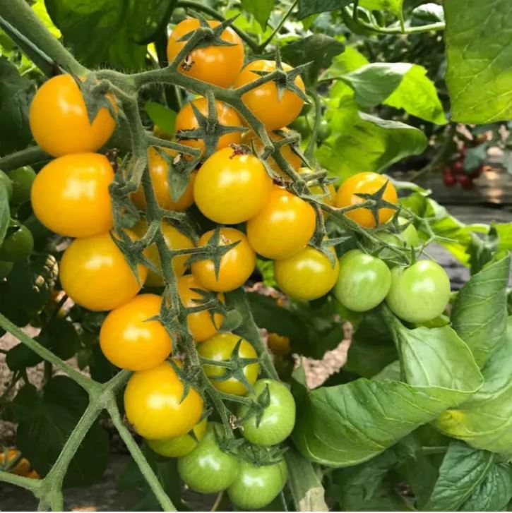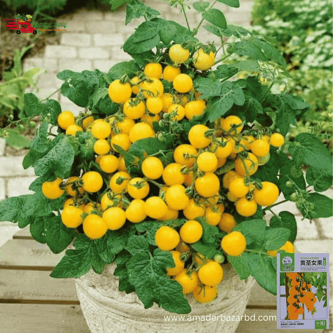 ইয়েলো চেরি টমেটো / Yellow Cherry Tomato (黄圣女果) হলো একটি প্রিমিয়াম চেরি টমেটো জাত, যা উজ্জ্বল হলুদ রঙ, মিষ্টি স্বাদ ও থোকায় থোকায় ফল ধরার জন্য বিশেষভাবে পরিচিত। ফলগুলো আকারে ছোট, গোলাকার চেরি সাইজের, খোসা মসৃণ ও চকচকে এবং ভেতরের অংশ রসালো। এর আকর্ষণীয় রঙ ও স্বাদের কারণে সালাদ, কাঁচা খাওয়া ও রেস্টুরেন্ট ব্যবহারে এর চাহিদা বেশি।